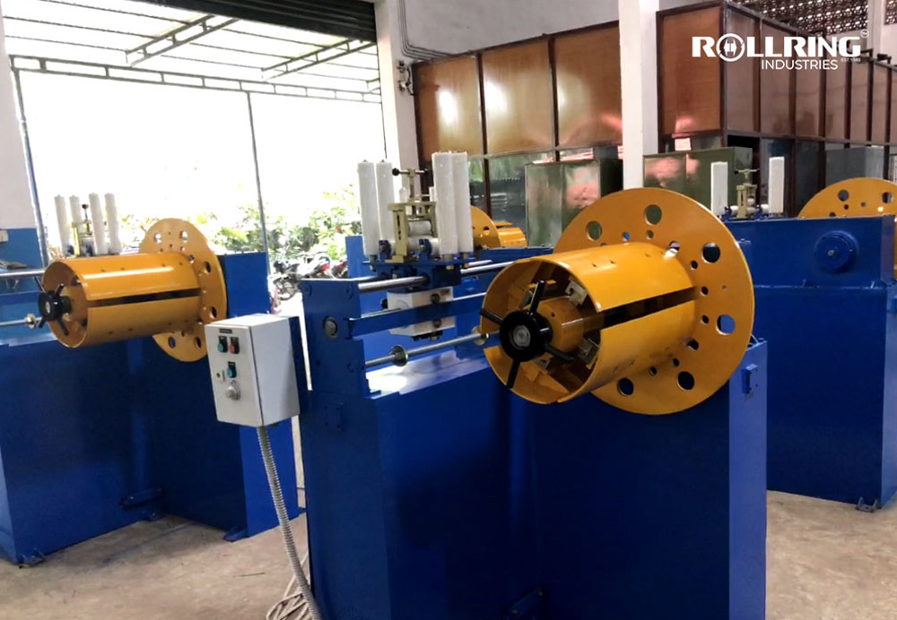 Former : Coil is wound on an adjustable former, diameter of which can be finely adjusted with a handle. Add on segments can be provided to increase the diameter range. Former will be sturdy design and consists of four MS segments. Flange with four slots is mounted on the Shaft. Suitable slots provided for tying the coil at four points before unloading.
